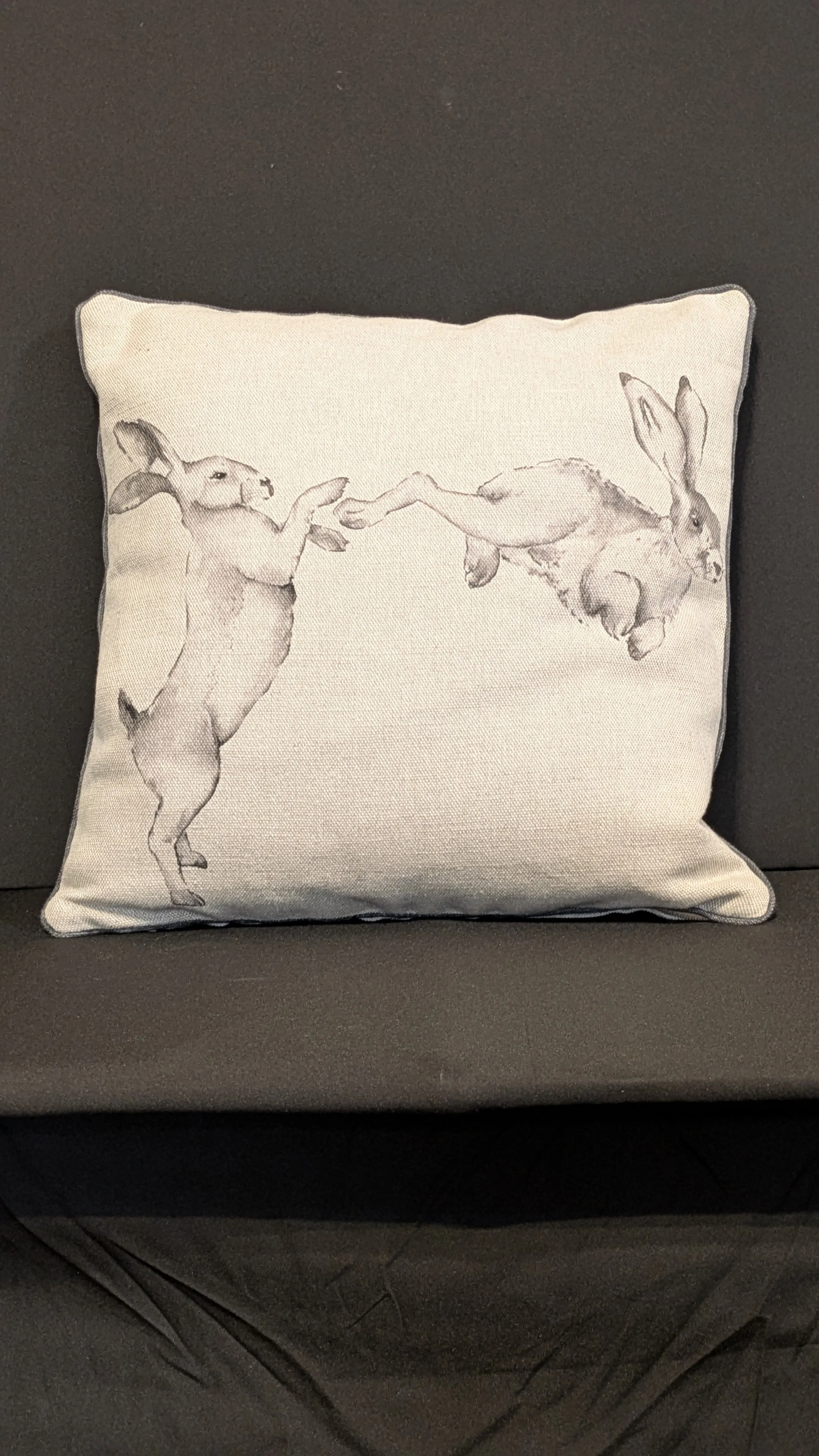 Handmade Linen Frolicking Hares Cushion