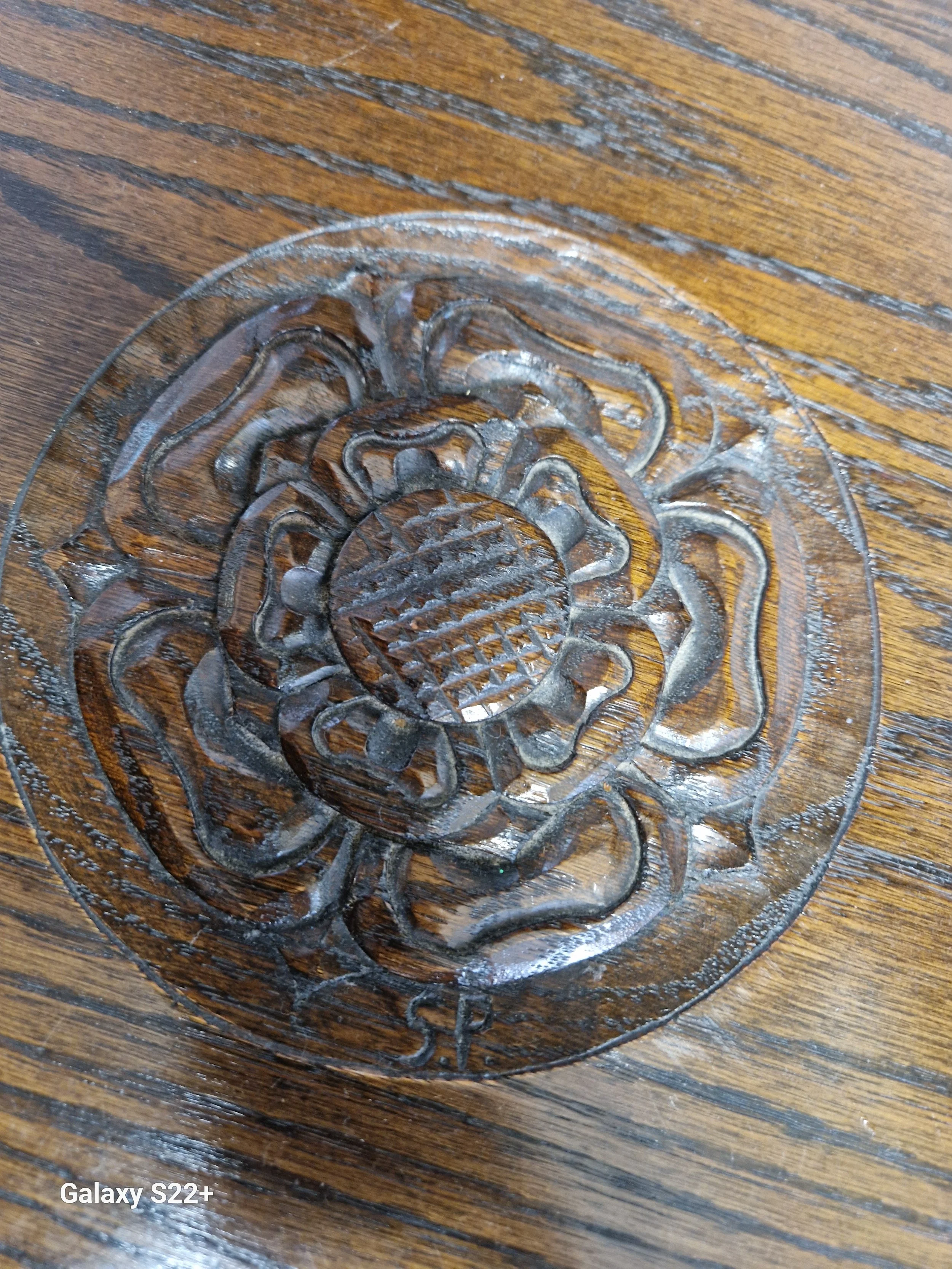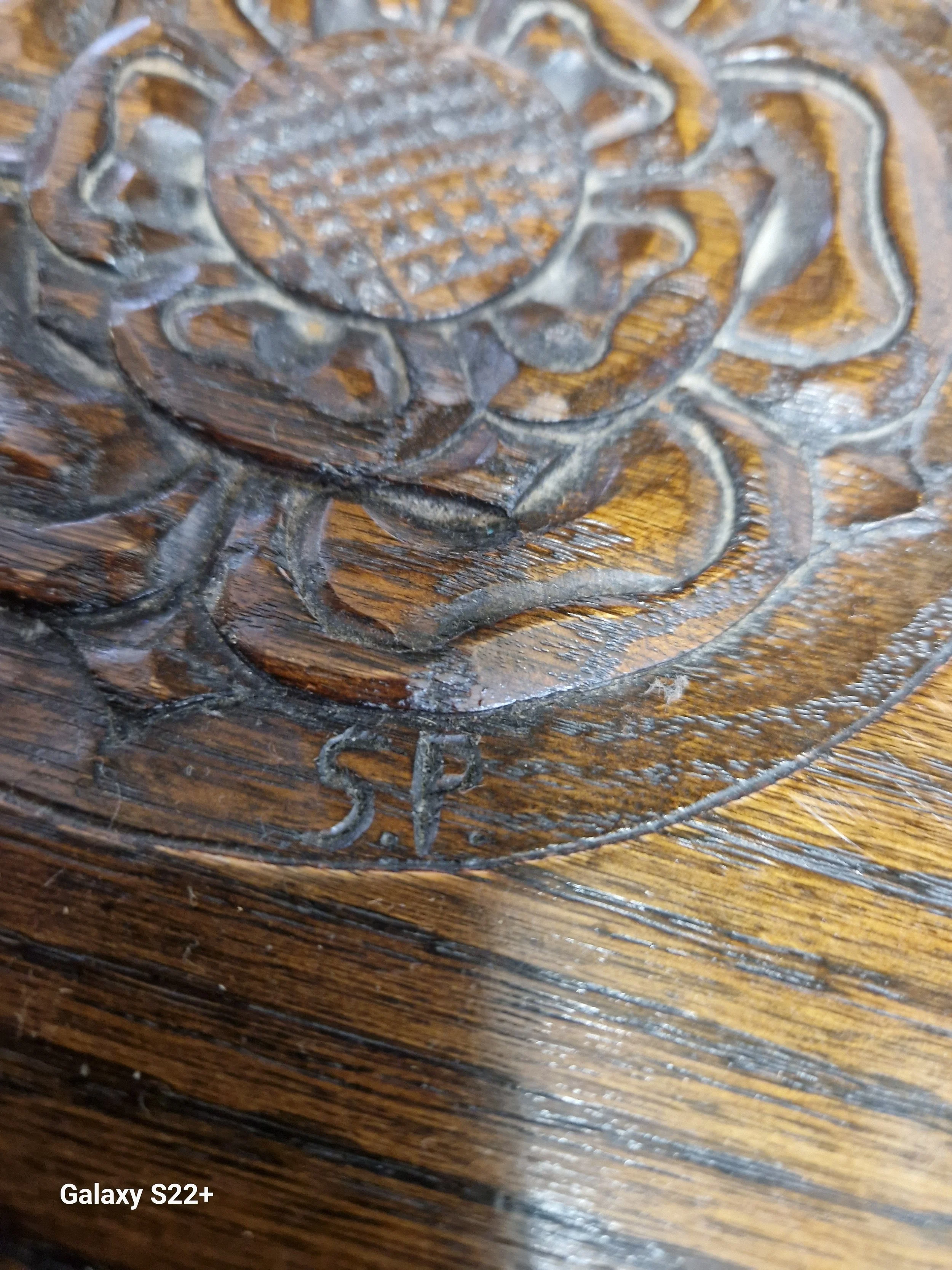 Carved Yorkshire rose to centre with carvers initials (see pics).